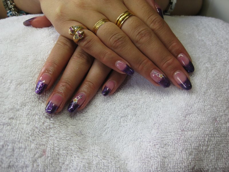 French Manicure Bio Sculpture #2019 Lavender Nights met glitter, # Strawberry Pink.